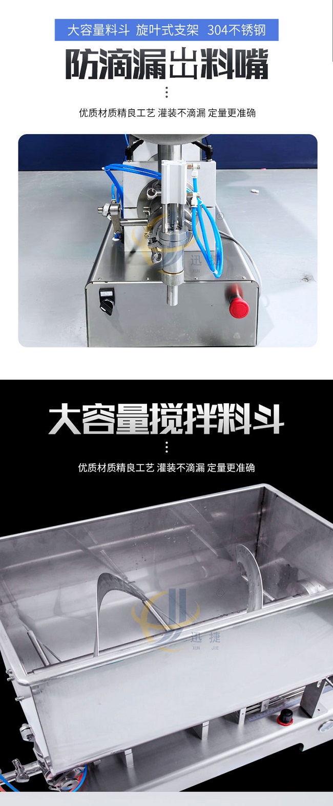 變頻攪拌醬料灌裝機(jī)采用大容量料斗、旋葉式支架、304不銹鋼,適用范圍廣。