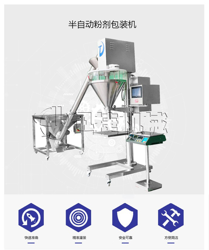 該粉劑包裝機(jī)適用于有一定流動(dòng)性的粉劑狀、顆粒狀物料,可適合袋類、罐類、瓶類等各種包裝容器粉劑定量包裝,速度快、精度高。如農(nóng)藥、獸藥、預(yù)混料、添加劑、奶粉、淀粉、調(diào)味品、酶制劑、飼料等粉劑狀、雞精、餃子粉、葡萄糖、奶粉、綠豆粉、淀粉、調(diào)味料、飼料、顆粒狀物料的定量包裝。該款半自動(dòng)粉劑包裝機(jī)在市場(chǎng)深受顧客喜愛,自然有它的優(yōu)勢(shì),該設(shè)備提高工作效率、降低生產(chǎn)成本計(jì)量準(zhǔn)確、包裝規(guī)格大小均可成品干凈整潔、粉塵不外粘機(jī)器性能穩(wěn)定、使用壽命長(zhǎng)占用空間小、操作簡(jiǎn)便、移動(dòng)方便。