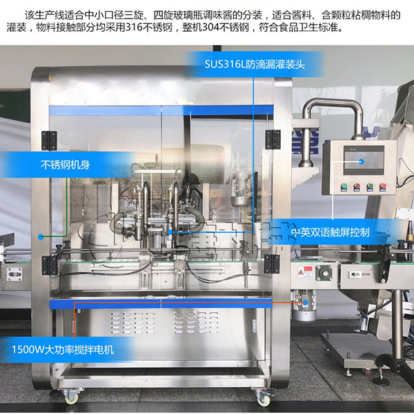 7、牛肉醬灌裝機(jī)設(shè)備輔料添加料可調(diào),精準(zhǔn)方便,提高自動(dòng)化程度。