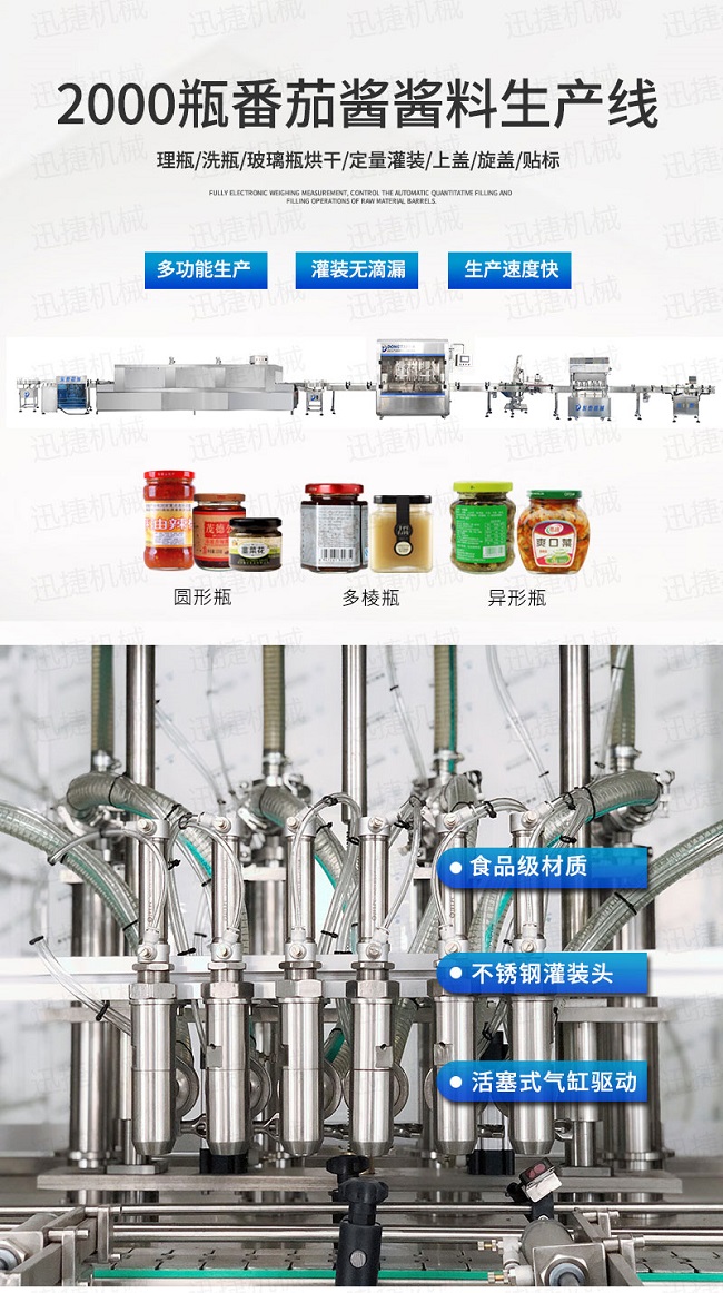 功能齊全,能夠針對不同的產(chǎn)品進行有區(qū)別灌裝的番茄醬灌裝機備316L不銹鋼精制防滴漏灌裝頭,專為番茄醬的灌裝去設(shè)計的,通過性好,內(nèi)外精拋,促進醬料工業(yè)的進步,而醬料工業(yè)的發(fā)展又來作用于番茄醬灌裝機的更新?lián)Q代技術(shù)進步,雄厚的經(jīng)濟技術(shù)實力助力與企業(yè)在市場中不斷的升溫不斷進行技術(shù)的融合讓番茄醬灌裝機設(shè)備在外觀、材質(zhì)上有著更加美觀的特點,在這個科技發(fā)展的年代,您還有什么理由不去選擇使用番茄醬灌裝機來保護自己的產(chǎn)品呢?