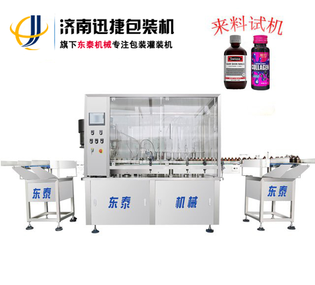 口服液糖漿灌裝機(jī)準(zhǔn)確地來講叫液體灌裝軋蓋機(jī),因為口服液和糖漿制劑的灌裝量都比較小,定量準(zhǔn)確性比較好,一般帶有內(nèi)塞等特性,所以選擇灌裝軋蓋機(jī)的比較多。